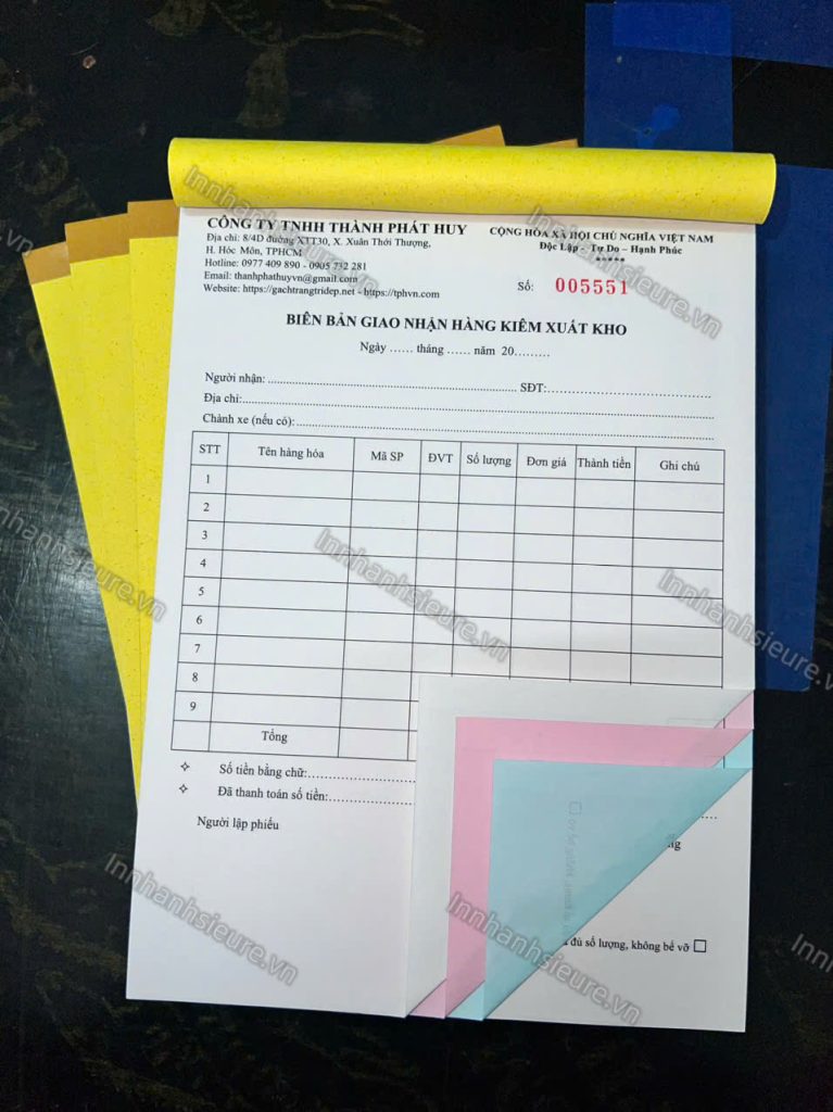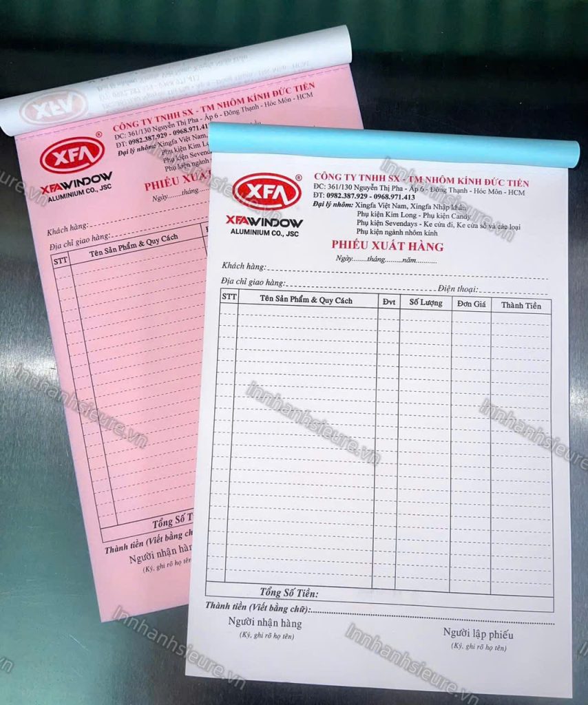- 2 liên: 1 cho khách hàng, 1 lưu tại kho.