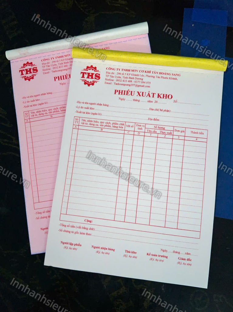- Lưu trữ lâu dài: Mực in bền màu, giấy chất lượng giúp phiếu xuất kho không bị phai hay ố vàng nhanh.